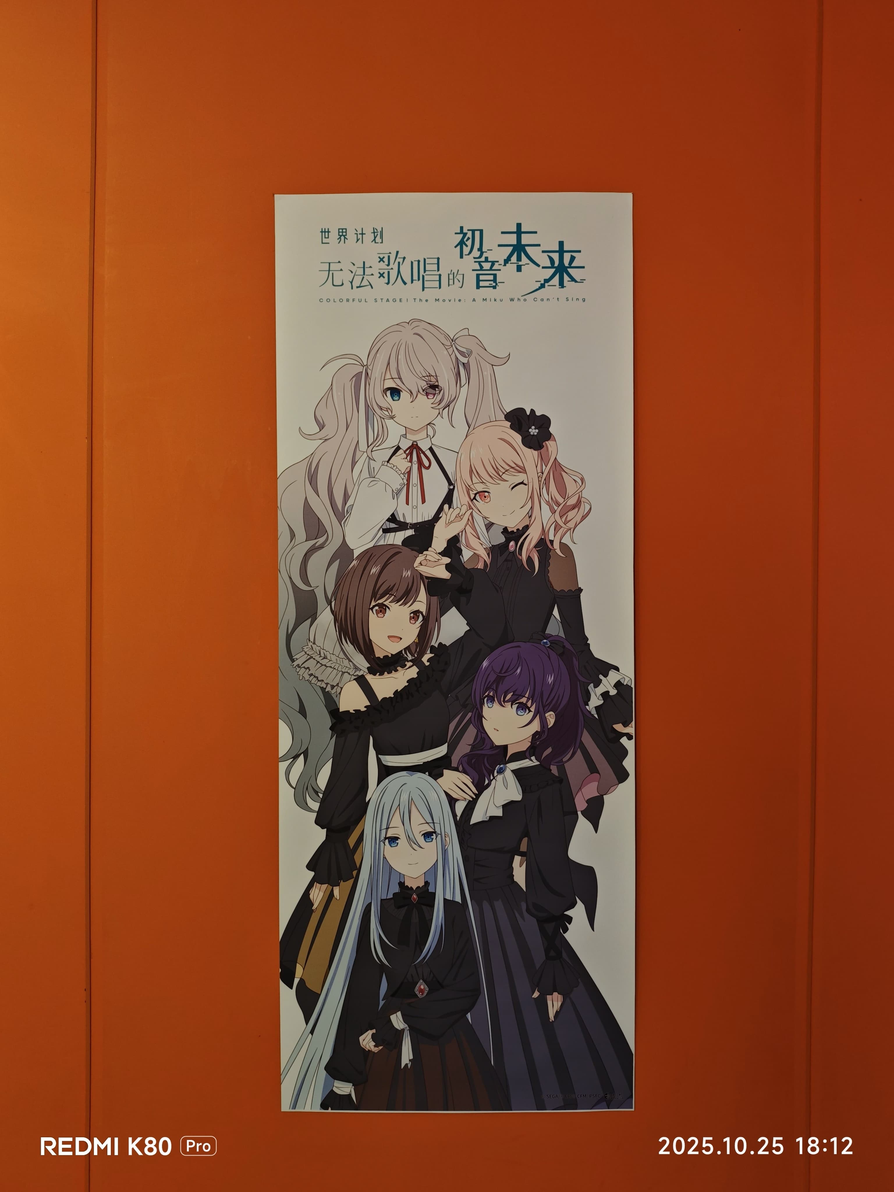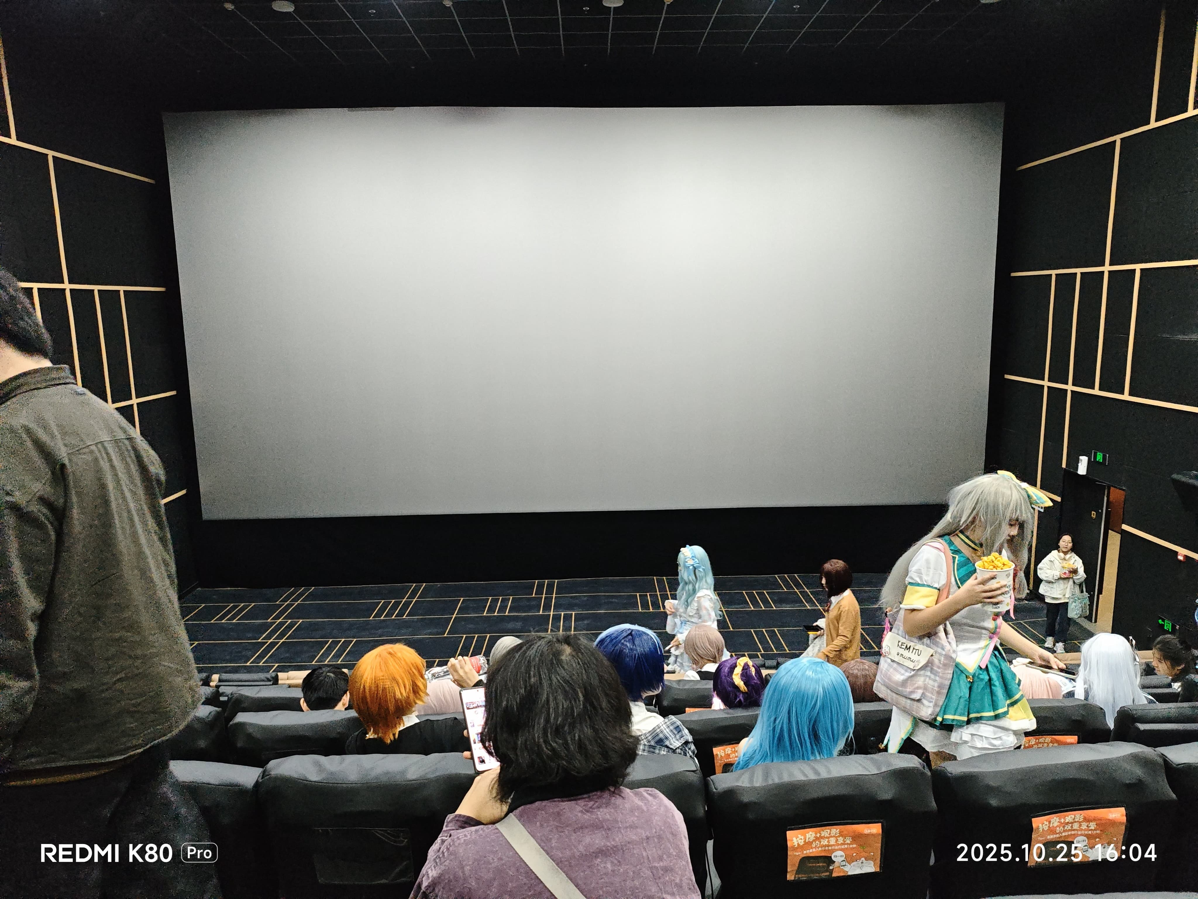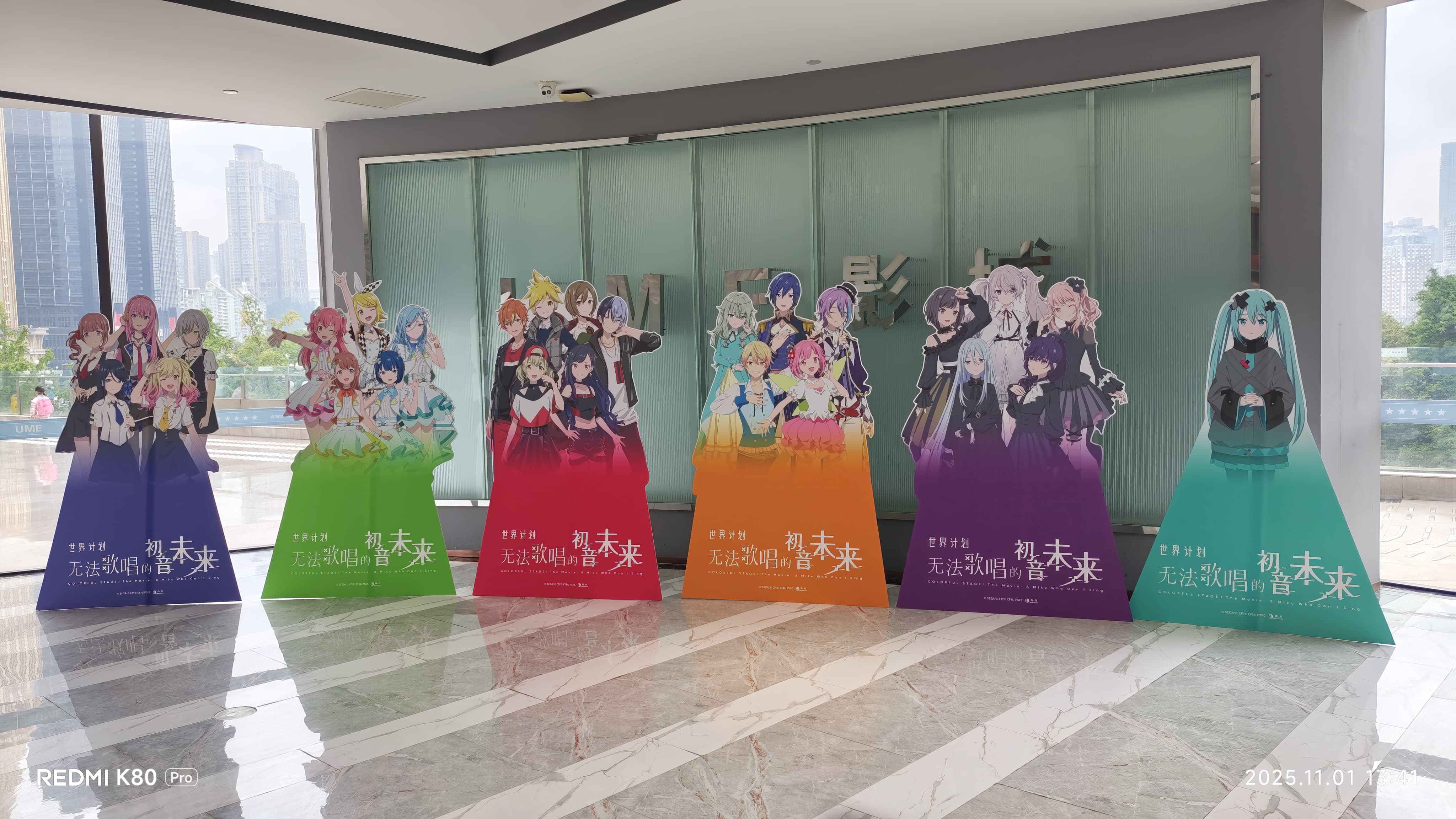 在不安です中等了好几天,终于在10月25号跟着CQUPT PJSK观影团一起观看了世界计划剧场版。因为是上映首日去的重庆观音桥的主题影院,所以很热闹,电影元素很多,大家的浓度也很高。不过我们去的场次稍微有点晚了,而特典刚好在我们前面一个场次发完了,所以留下了一点遗憾。