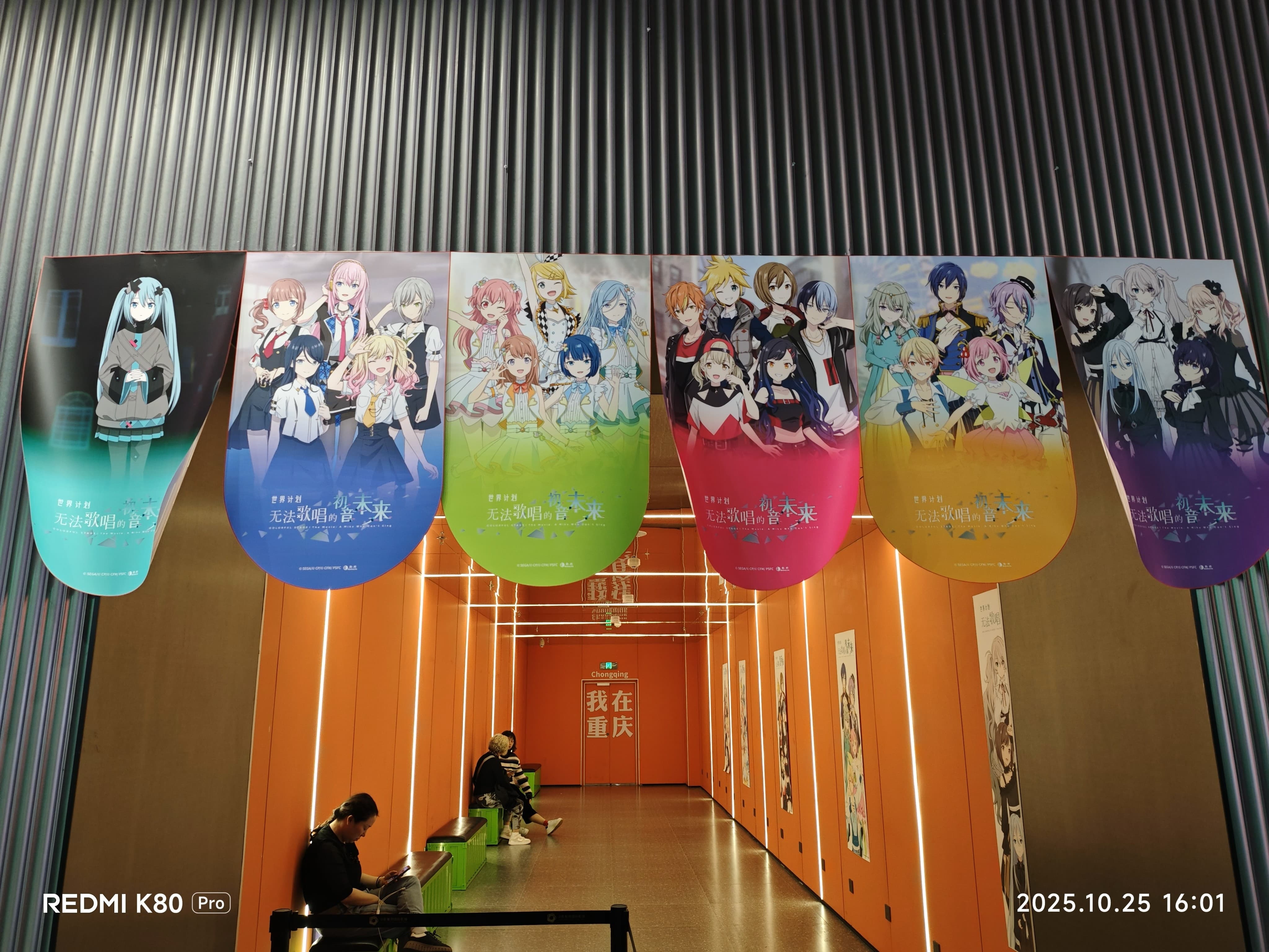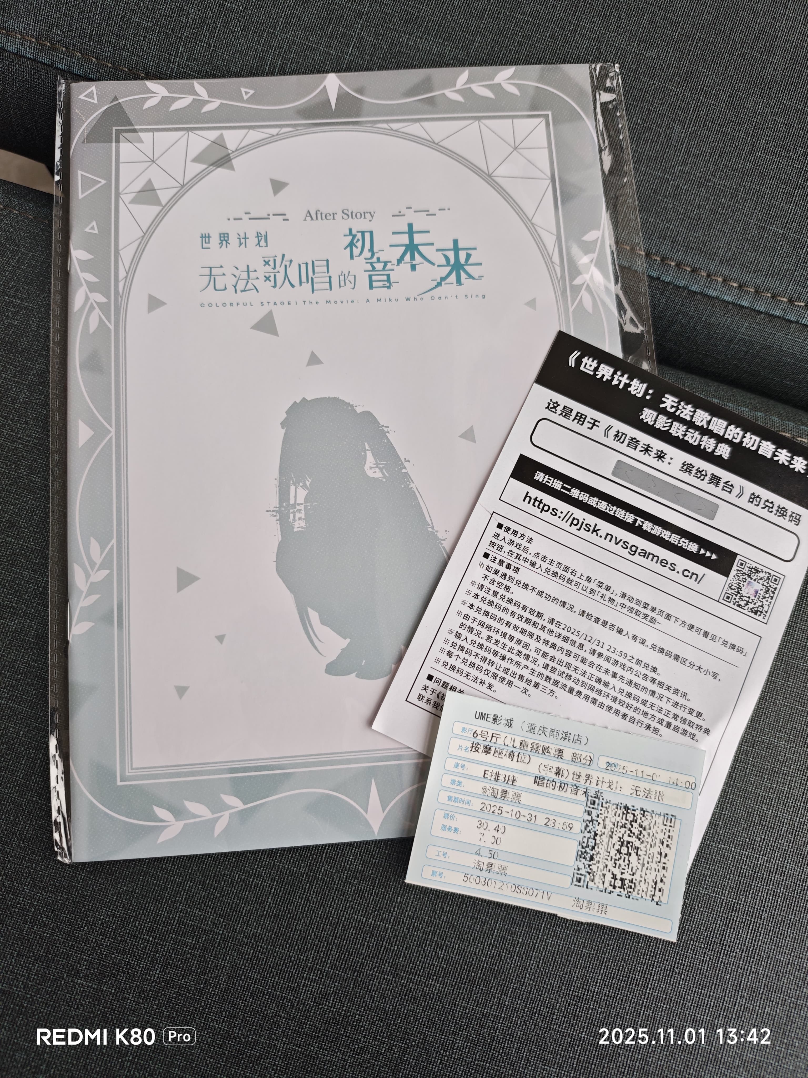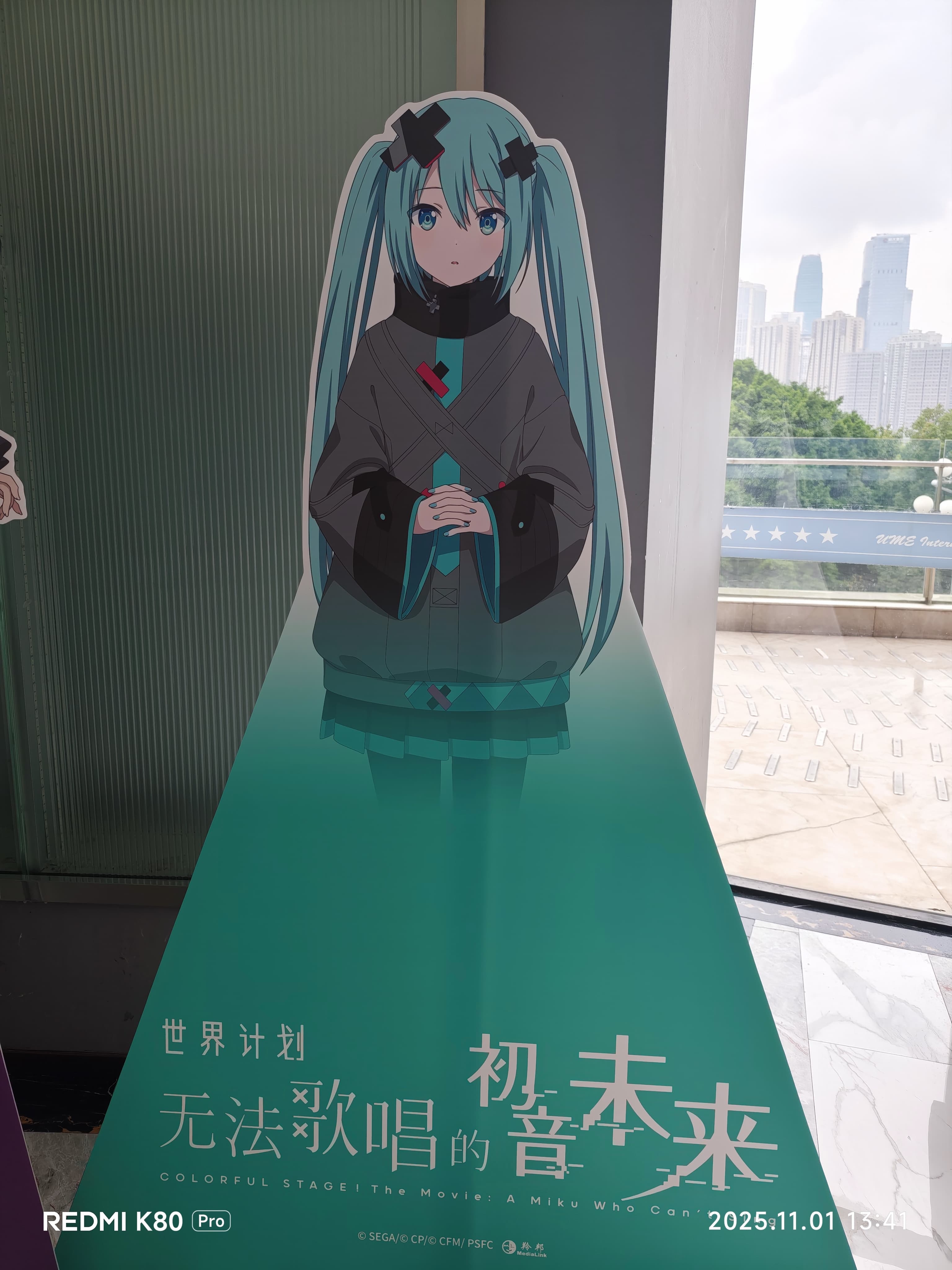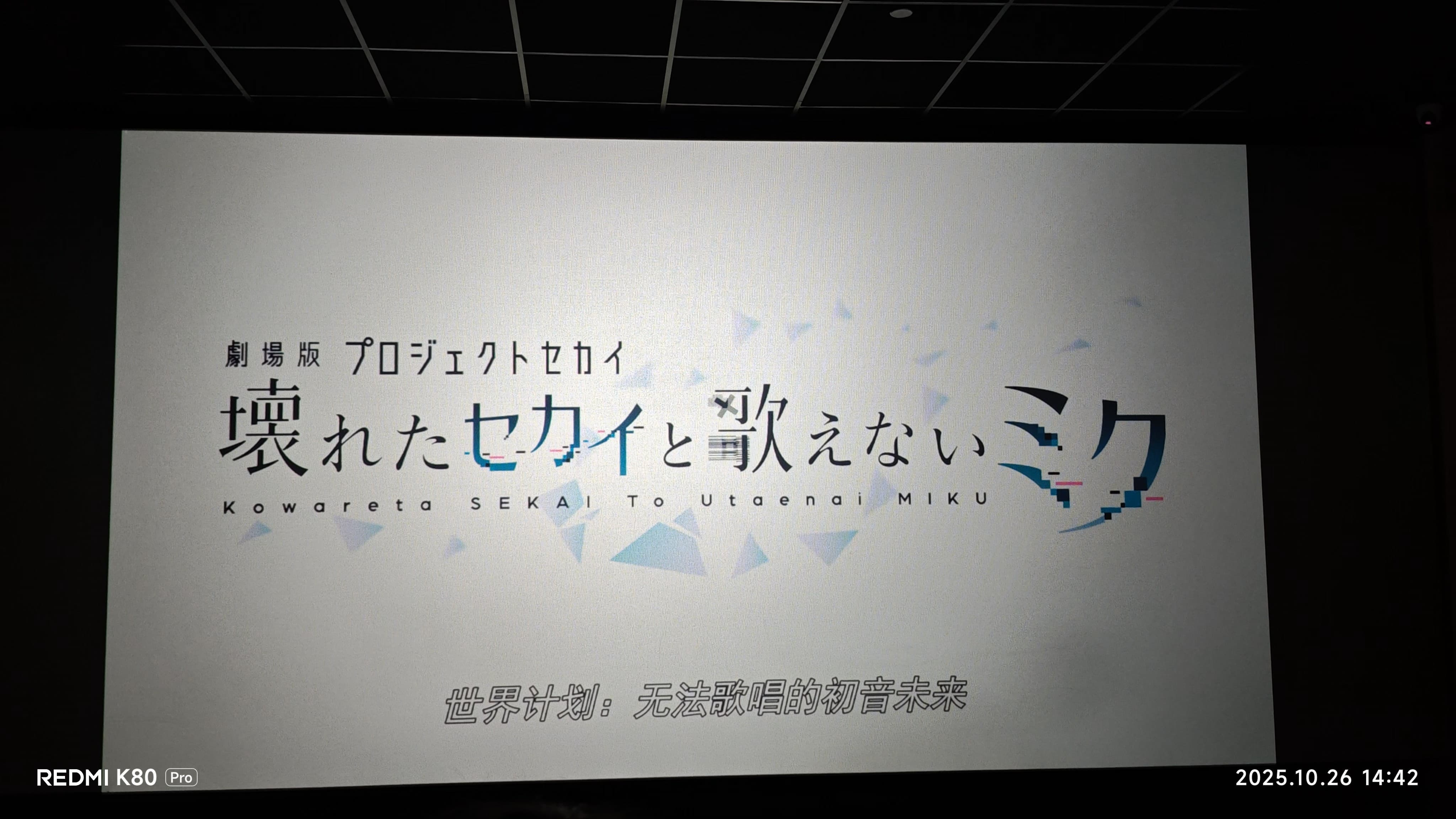 在不安です中等了好几天,终于在10月25号跟着CQUPT PJSK观影团一起观看了世界计划剧场版。因为是上映首日去的重庆观音桥的主题影院,所以很热闹,电影元素很多,大家的浓度也很高。不过我们去的场次稍微有点晚了,而特典刚好在我们前面一个场次发完了,所以留下了一点遗憾。